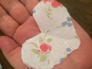 Prayer cloths are simple to make. They are small (for ease of the person carrying the cloth) and don’t need to be fancy. I go to the dollar store and buy a small pack of pillow cases. I cut heart shapes out of the fabric. We anoint them with oil and pray over them as a team, with each person holding the cloth as we pray. For children, you can even make animal-shaped prayer cloths.