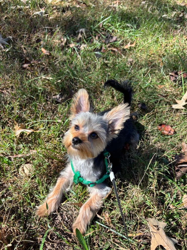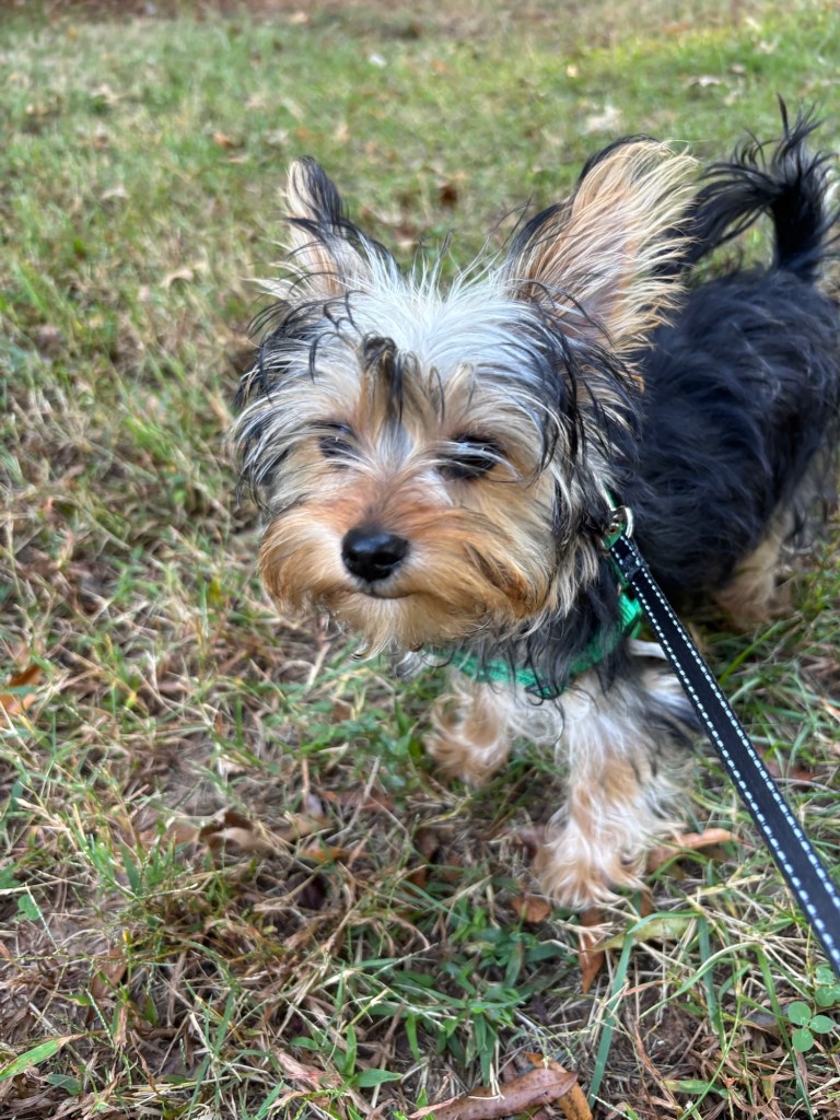 I just took my puppy to the groomer for the first time. He is a Yorkie, so I prepared myself that he would come home looking very different. Yorkies are born with a thick, black coat. As they get older, their Yorkie silver and gold hair grows in. I felt like I came home with a different dog! Handsome but so different.