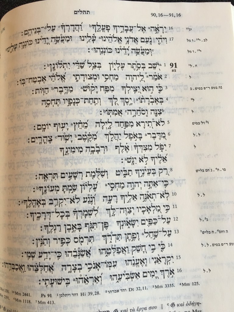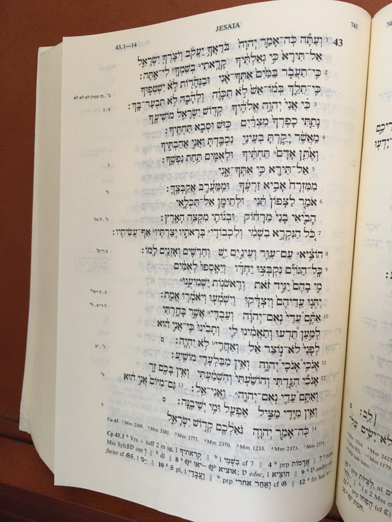 Biblia Hebraica Stuttgartensia by Karl Elliger, Willhelm Rudulph, et al. This is the Hebrew Bible I use for my studies. It’s a paperback, so it’s easy to carry around. The Hebrew lettering is clear and large enough to recognize words with ease. The vowels are marked, which will help you sound out the words as you’re learning. Remember to use your Hebrew Bible from right to left, as the Hebrew language reads in that direction.